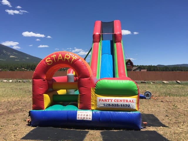 As a single unit this is a great inflatable obstacle course and a heck of a slide, fun and colorful, great for all ages, runs as a single lane.