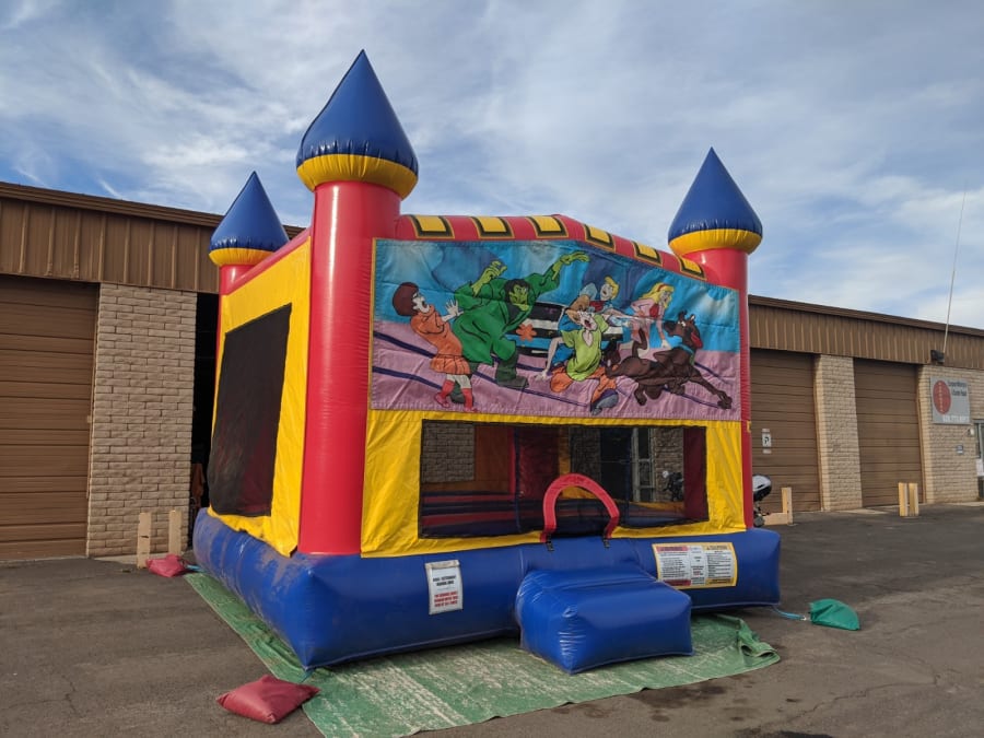 Scooby Doo themed banner will be on your choice of Large Bounce House (15x15)