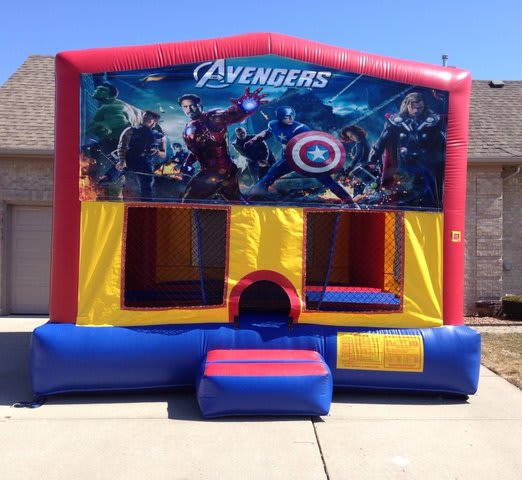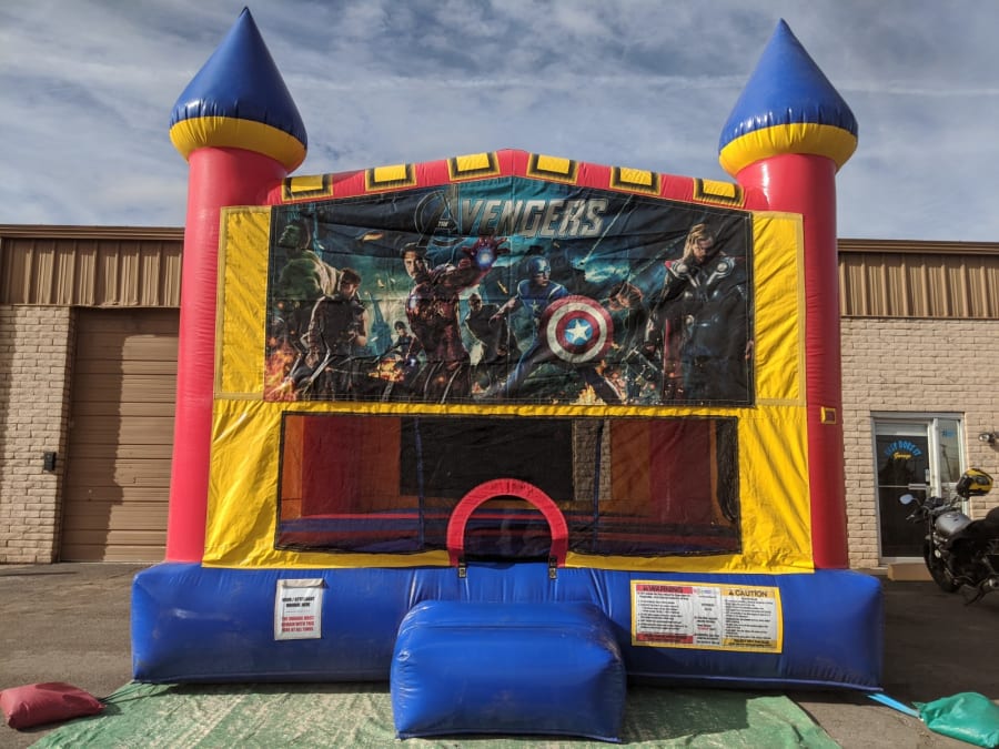 - Set up and take down of this Avengers bouncy house banner with the bounce house unless 24 hour customer pick up was selected
