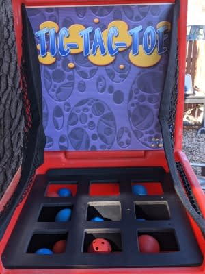 Our Tic tac toe carnival game is a fun toss game. Try to toss the balls into the slots to make tic tac toe!
