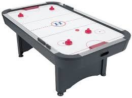 Our air hockey table game has electronic scoring and comes with 2 air hockey pucks and 4 pusher paddles.