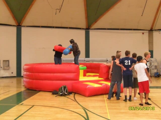 As fun to play as it is to watch, play 2 people at a time knock the other person off the pedestal first. A safe alternative to king or the hill.