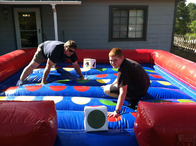 Inflatable Twister fun for all. Plays up to 4 people at a time. Great interactive game for any group function. Low profile unit is suitable for indoor and oudoor use.