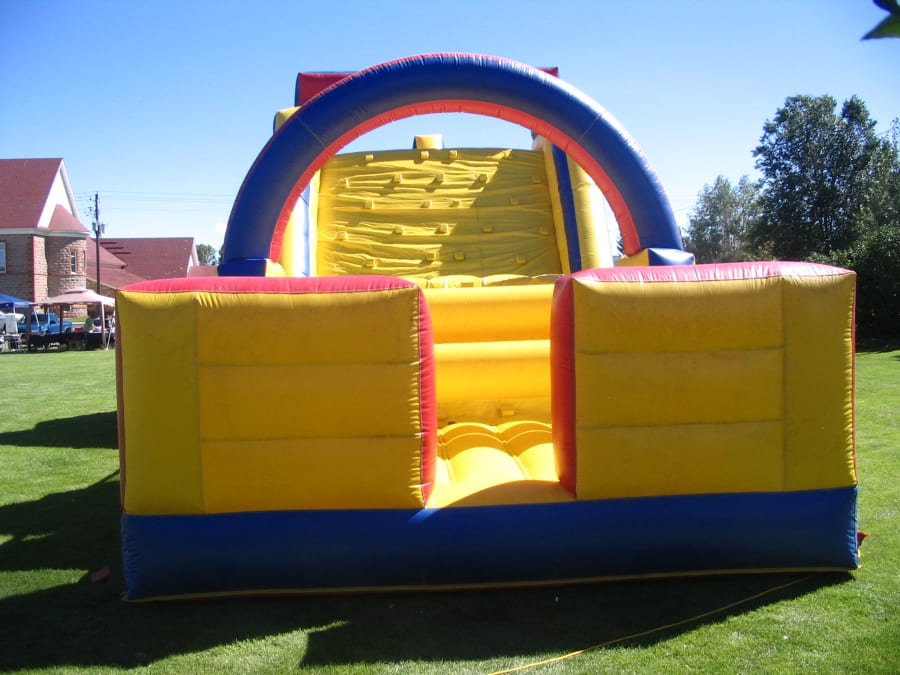 Not recommended for small children, especially under 3 years old as this slide is screaming steep. This obstacle course is huge! Perfect for all community events, company parties, or youth groups.