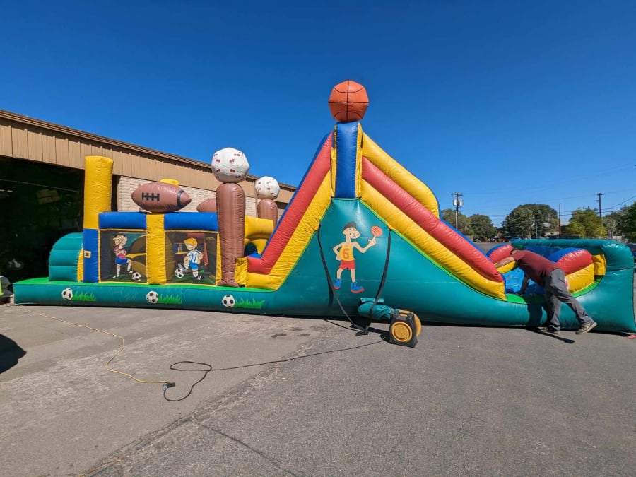 Add some thrill and excitement to your next party and event with our Sports Obstacle Course. It's the perfect choice for school carnivals, flagstaff events, and competitive minds seeking a fun challenge! 🏃♂️🎉🏆 Get ready for the ultimate racing fun with our top-of-the-line Sports Obstacle Course! Perfect for teens and adults, this inflatable obstacle course is the highlight of any event, from birthday parties to corporate team-building activities.