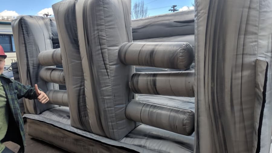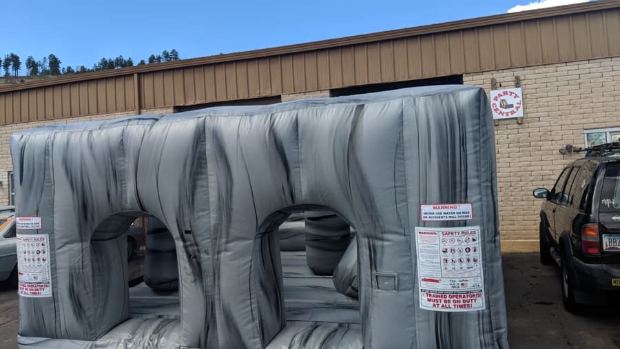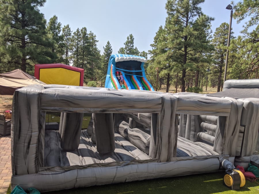 The fun run obstacle course will be one of your favorite obstacle courses for backyard parties. 2 racers compete and are taken through vertical pop up obstacles, tunnels, and have to squeeze through the inflatable wall to win. If you want to... add the fun run slide to make this a huge ultimate fun run obstacle course! Normal setup is within 100' feet of a power source.