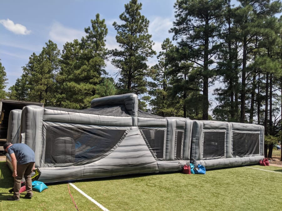 Your guests can race, slither, jump, and squeeze through 20' of obstacles. Then climb up the 12' double slide and slide out to win. Great for our Flagstaff backyards that don't have a ton of space, yet big enough to have a blast at your party with this inflatable obstacle course rental in Flagstaff.